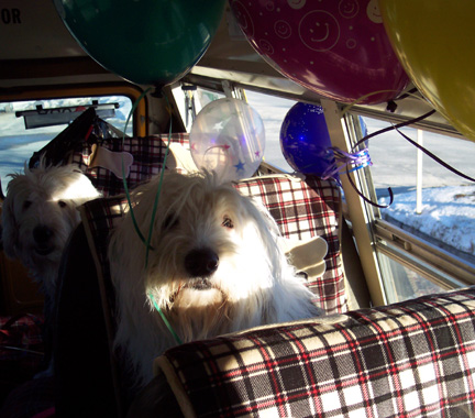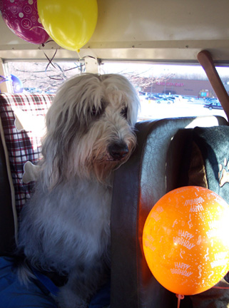 "Hop on Board the Birthday Bus!" said Scruffy.